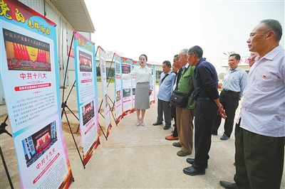 3月17日,赣州经开区湖边镇岗边村第一书记张涛通过展板给该村的党员们讲党史。当日,岗边村两委举办了“学党史 悟初心”主题实践活动,此次活动通过阅览党史展板、重温入党誓词、讲述党史故事、合唱红色歌曲等形式,让党史学习教育深入群众、深入基层、深入人心。