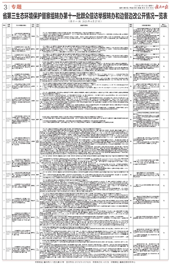 省第三生态环境保护督察组转办第十一批群众信访举报转办和边督边改公开情况一览表