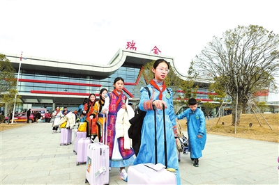 本报讯 (记者余书福 通讯员赖学阳 吴莺)1月17日,内蒙古赤峰市青少年宫研学团一行46人飞抵赣州瑞金机场,踏上为期5天的“草原儿女赴赣南,跟着红军寻初心”红色研学之旅。此次研学活动由内蒙古赤峰市青少年宫、赣州市青少年活动中心联合主办,江西初心源文化发展有限公司(赣州市全民国防教育研究中心)具体执行。活动旨在通过实地走访革命圣地,引导草原儿女在跨越山海的追寻中感悟红色历史,传承长征精神,深化民族团结与文化交融。