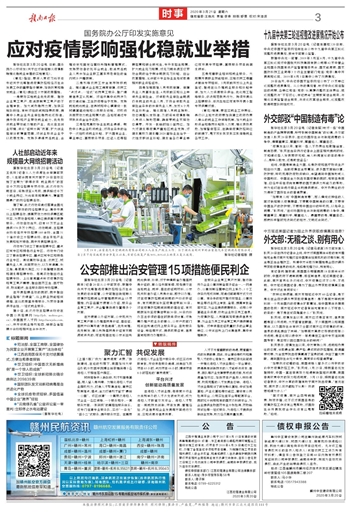 在服务企业复工复产方面,推行新开办企业公章刻制备案多证合一、一网通办,公章刻制经营单位网上承办、1个工作日内完成刻制,可通过邮寄等方式交付公章。有条件的地方推行旅馆业、公章刻制业等行业网上审批、备案,提高审批备案效率,为企业提供便捷服务。运用公安基础业务资源,协助企业核实员工信息,为疫情防控、人员隔离观察提供信息支撑,为企业及员工安全复工复产提供精准指导。对申领居住证数量较多的企事业单位,公安派出所上门采集信息、集中受理制作。