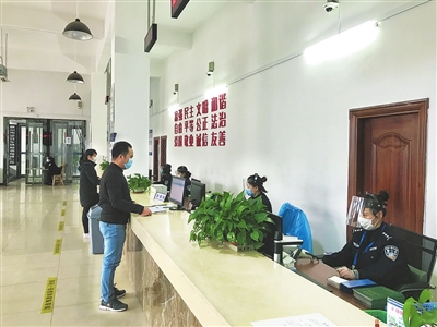 图为近日市民在赣州开发区交警大队车管所办理业务。为确保疫情防控不松劲、业务办理不松懈,在疫情期间,该大队车管所根据每日业务量等实际情况,弹性设置服务流程,采取预约办理、分区限流等方式,并推出25项交管业务可足不出户网上办,避免人员过度集中,降低交叉感染风险。