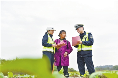 近日,在安远县凤山乡烟叶基地,民警向村民讲解道路交通安全知识。该县公安局交通管理大队一手抓疫情防控,一手谋划春耕宣传,做到疫情防控和春耕安全两不误。