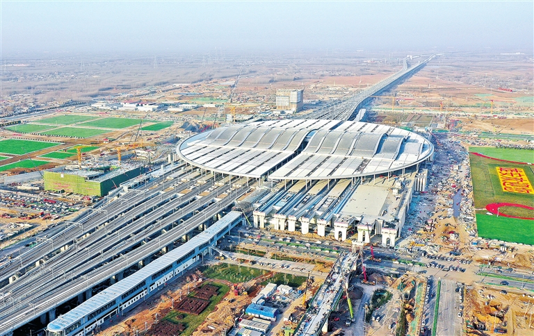 这是十二月二十三日拍摄的京雄城际铁路雄安站(无人机照片)。日前,京雄城际铁路雄安站建设已经进入最后的收尾阶段,将于年底投入使用。