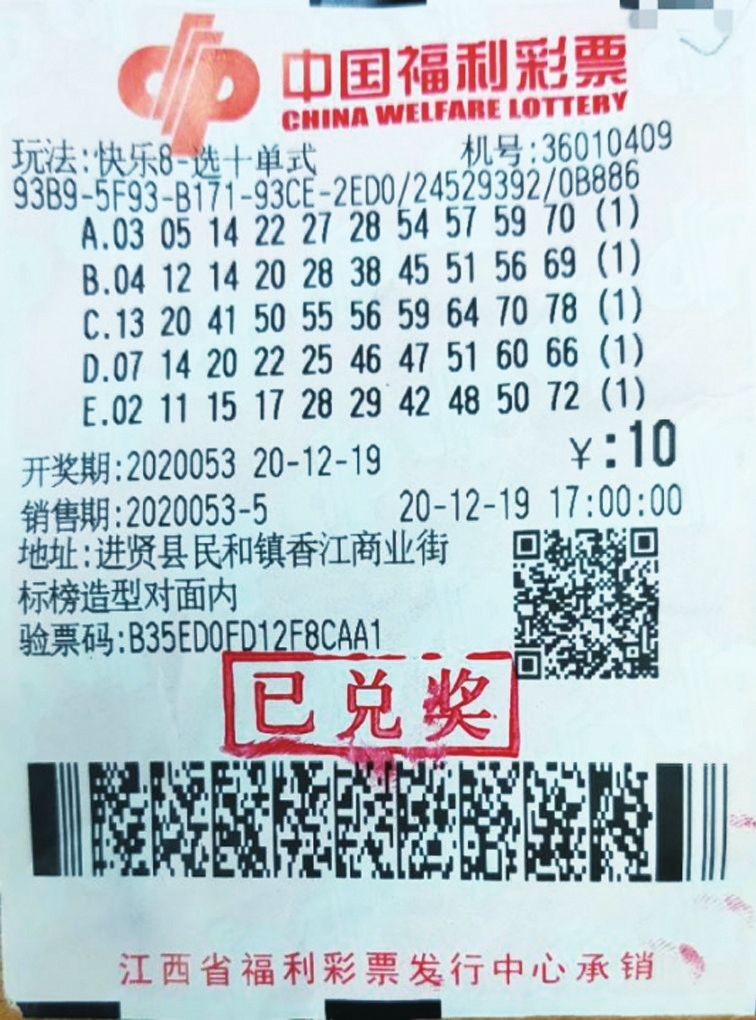 12月19日,“快乐8”游戏第2020053期开奖,“选十”玩法开出了1注500万大奖,被我省南昌彩民幸运中得。这也是我省首注“快乐8”500万元大奖。