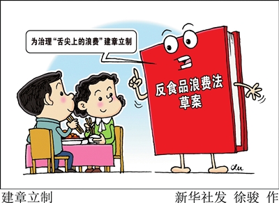 在餐桌上讲排场、比阔气……近年来,餐饮浪费问题引发社会广泛关注。22日,反食品浪费法草案提请十三届全国人大常委会第二十四次会议审议,为治理“舌尖上的浪费”建章立制。