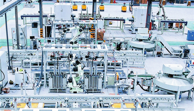 图为12月23日笔者拍摄的南康智能共享备料中心一角。南康智能共享备料中心运用智能机器人进行智能化生产,比传统生产节约人力60%,单位面积产值高于传统产业的75%。