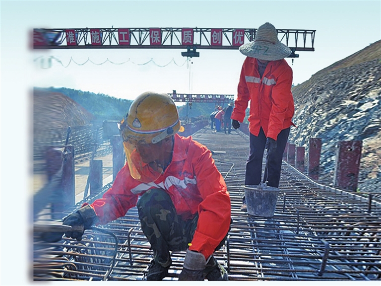 砥砺前行勇攻坚,艰苦卓绝敢向前。项目办党支部采取进度分析、重点跟踪等办法,以月度及阶段检查评比为契机,适时开展“攻坚克难100天”“路基施工歼灭战,全面完成第一阶段目标任务”等劳动竞赛,营造“比、学、赶、超”的施工氛围。“眼前是大山,脚下是悬崖,在这个地方行路难,修路更难,山高坡陡、施工场地狭窄、材料运输困难,桥隧相连,施工作业面狭窄。”A7标项目经理李攀说,为破解难题,项目办组织党员干部合力攻坚,把临时便道施工当作永久工程来做,加大资金、设备、人员投入,把便道全部硬化,在临崖高落差路段增设高标准的安全墩和波形护栏,有效打通了施工便道,保障了施工车辆安全,确保了工程有序推进。