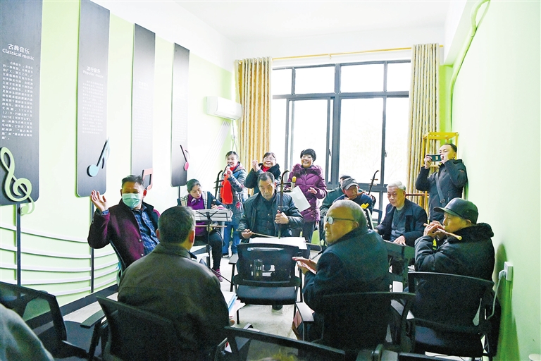 来到犹江社区日间照料中心,有的老人正在按摩椅上按摩,有的正在测量血压,有的正在棋牌室下棋,其乐融融。