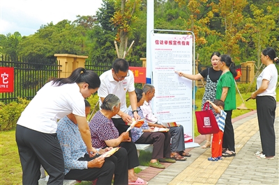 近日,寻乌县纪检监察干部来到长宁镇学习社区,为群众开展信访举报宣传。寻乌县纪委监委会同各乡镇纪委、城市社区纪工委、县纪委监委各部室开展全县纪检监察系统信访举报宣传周暨“我为群众办实事”实践活动,走村串户为群众宣传信访举报相关事项。