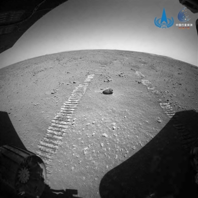 这是“祝融号”火星车后避障相机拍摄的图片。