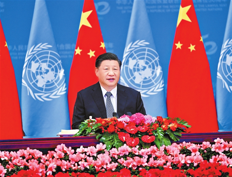 习近平强调,新中国恢复在联合国合法席位以来的50年,是中国和平发展、造福人类的50年。