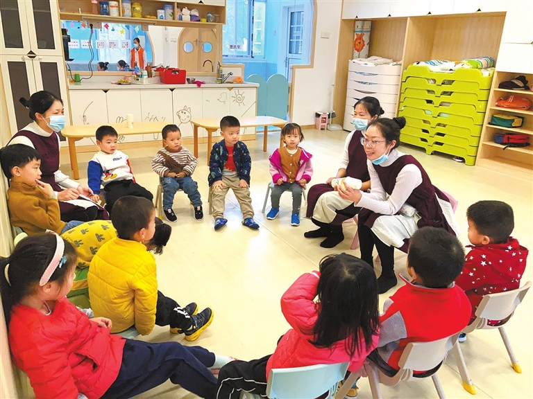 考察学习、市场调查、筹集资金、注册选址……她日夜忙碌,跑部门、精设计、看施工、买家具……每一个环节,她都亲力亲为。努力终有回报,经过一年多的筹建,2020年12月, 一家投资400多万元,总面积达1448平方米的婴幼儿托育中心正式开园。