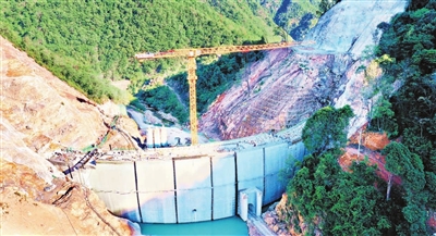 近日,位于兴国县高兴镇龙山村的洋池口水库项目建设现场,工人正在加紧水库大坝施工。该项目是兴国县在建的重点水利建设项目,水库建成后,将解决水库下游六万多亩耕地灌溉用水,保障近七万人生活用水安全。 陈鹏 梁昊 摄
