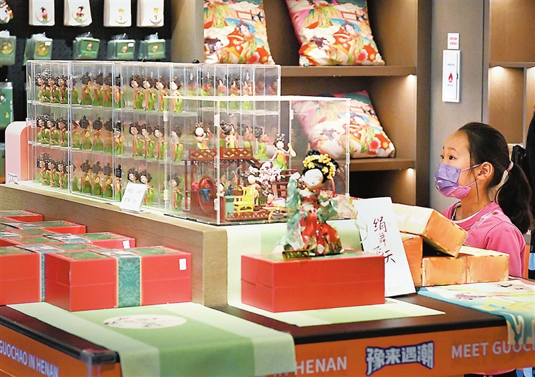 5月17日,一名小朋友在河南博物院文创商店内挑选文创产品。河南博物院拥有丰富的馆藏文物资源,近年来,其文创团队对这些资源进行梳理,设计开发了考古盲盒、棒棒糖、书签、冰箱贴等近1600款精美的文创产品,使文物“活起来”“潮起来”,融入现代生活,受到众多年轻人的追捧。 新华社记者李安 摄