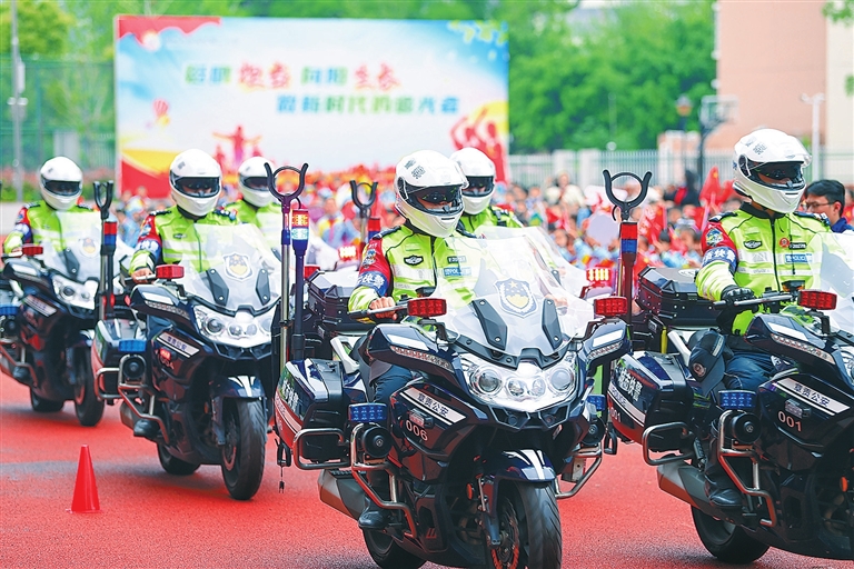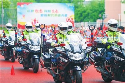 3月31日,在章贡区第二小学东校区,民警向学生们表演骑行技能。当日,赣州市公安局章贡分局联合章贡区第二小学开展安全进校园活动,通过普法宣传、模拟演练、防爆培训等方式,切实增强师生安全防范和法治意识,共创平安和谐校园。