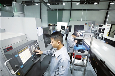 5月12日,工人在赣州鑫冠科技股份有限公司新能源高速连接器生产车间操作。该公司是一家专注于研发、生产、销售通讯终端、动力电池、高速连接器和新能源汽车连接器精密组件的国家高新技术企业,其生产的精密元器件大量供应给华为、OPPO、魅族等智能通讯品牌。该公司自去年启动的技改项目于近日投产,通过自主研发和对原有设备进行升级改造,新增精密自动车床、数控车床、空压机、叉车等生产及辅助设备69台(套),项目达产后各精密组件产能大幅增加。