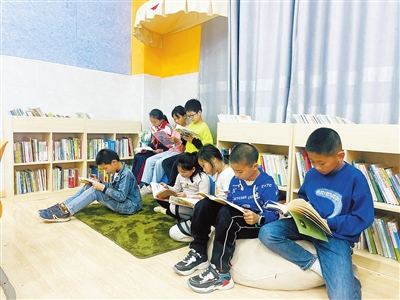 图为信丰县嘉定镇中心小学学生在学校梦想书屋看书。近年来,该校全方位、多举措构建阅读服务体系,不断完善校园阅读“小微”阵地建设,精心布设“共享书吧”、梦想书屋、书香校园等小角落,用阅读赋能成长,让书香溢满校园。