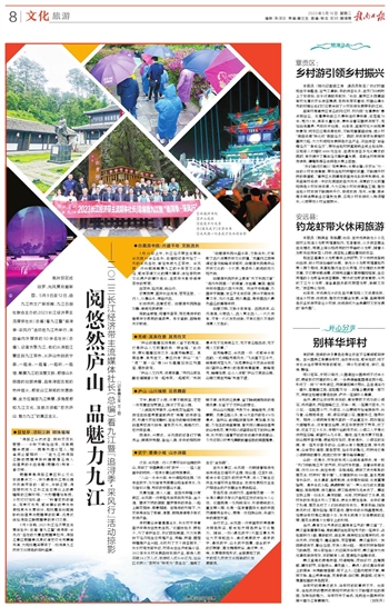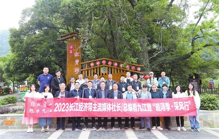枫叶荻花成旧梦,光风霁月画新图。5月9日至12日,由九江市文广新旅局、九江日报社联合主办的2023长江经济带主流媒体社长(总编)看九江暨“追浔季·采风行”活动在九江市举行,来自省内外媒体的50余名社长(总编)、记者齐聚九江,他们从浔阳江景区到九江茶市,从庐山市到武宁县,一路走、一路看、一路听、一路悟,触摸九江的深厚文脉,感悟山水田园的壮丽诗篇,品味浔阳古城的市井烟火,感受山江湖城的发展脉搏,全方位捕捉九江美景、多角度感知九江文化,深层次领略“悠然庐山 魅力九江”的真正含义。
