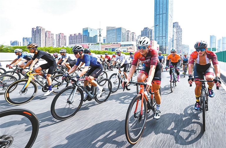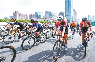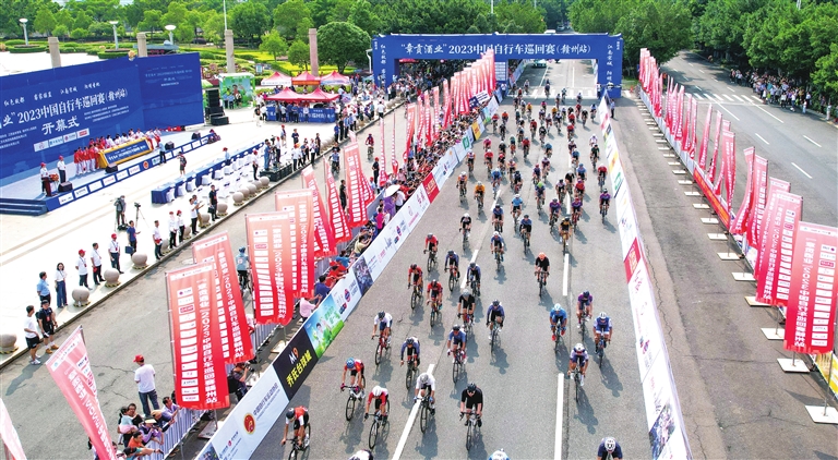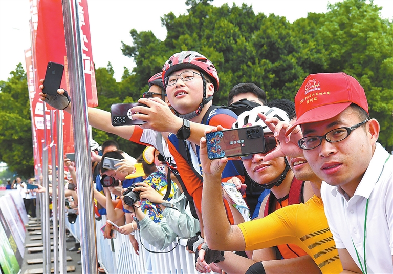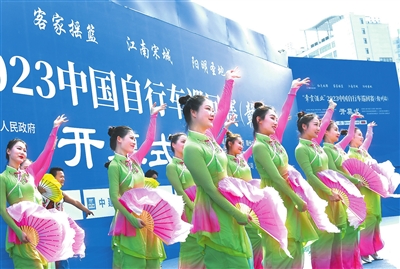 5月21日上午,2023中国自行车巡回赛(赣州站)在赣州市长征广场鸣笛开赛。这是2023年中国自行车巡回赛的首站比赛。赛道旁枝繁叶茂的榕树张开臂膀,迎接来自全球5个国家、中国国内26个省(市、区)的近2000名运动员。比赛开始,运动员如离弦之箭,冲出起点线,驶上激烈精彩又如诗如画的赛程。车队转入宽敞洁净的长征大道,随即又冲上平坦的城市高架路。运动员骑行在鳞次栉比的高楼大厦间,现代都市的气息、古朴的宋城文化扑面而来。赛道两侧热情的观众纷纷为运动员呐喊助威,并用相机和手机记录下精彩瞬间。