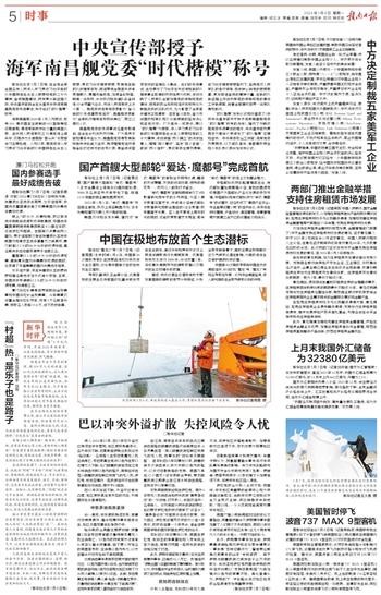 中央宣传部授予海军南昌舰党委“时代楷模”称号