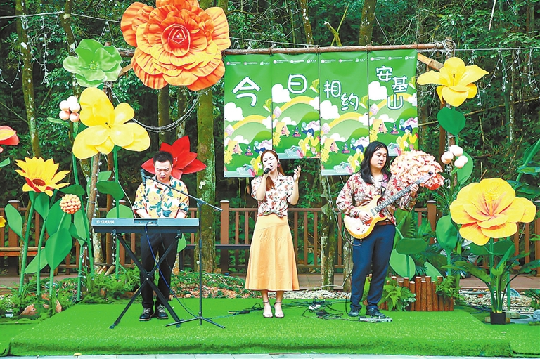 一条从山上蜿蜒而下的溪水贯穿景区全境,成就这里夏季避暑天堂的美誉,吸引不少家长带孩子来这里溯溪耍水。走进安基山,可以在安基山陈列馆观赏近千种动植物标本,在百草廉香谷识别200多种中药材和各类菌菇,在客韵山房沉浸式体验森林住宿,在安膳堂品尝原生态绿色餐饮……安基山植物种类丰富,植物标本DIY制作、纯手工药香包制作也能就地取材。放松下来的游客,还能在此安静地一笔一画写下内心不曾说出的话,向思念的人寄出一份来自大山独有的书信表白。