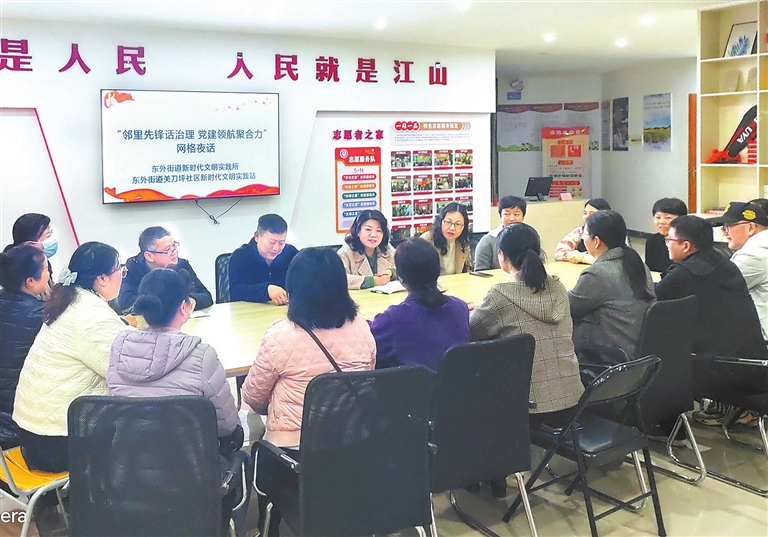 1月18日晚,章贡区东外街道新时代文明实践所联合关刀坪社区,开展“邻里先锋话治理 党建领航聚合力”网格夜话活动。为绘好社区共治“同心圆”,该街道积极发动辖区党员干部参加网格夜话,为网格小区解决物管难、停车难等献计出力。记者温玲 通讯员张秋灵 摄