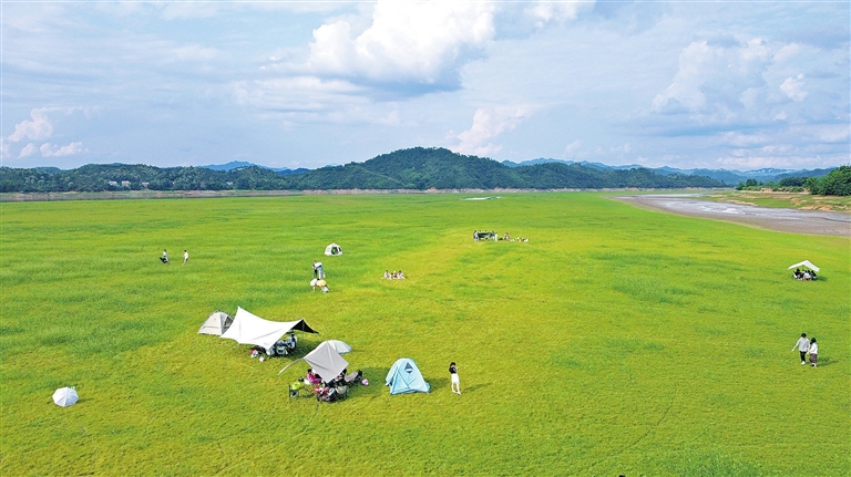 近日,游客在赣县区湖江镇尧口村的“网红草原“打卡游玩。近段时间,赣江尧口村段的河滩上长满蓼草,披上一层绿衣,形成壮美的天然草原,被网友戏称为“赣州的阿勒泰”。不少市民驱车到此赴一次草原之约,赏青青的草、看蓝蓝的天,吹清新的风,亲近自然,放松心情。 记者刘凯 摄