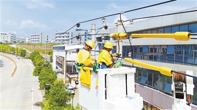 8月12日,国网安远县供电公司工作人员冒着高温,对10千伏车工2线进行带电搭接远恒佳职业学院备用电源,确保迎峰度夏期间电力可靠供应。魏迪金 李世洪 摄