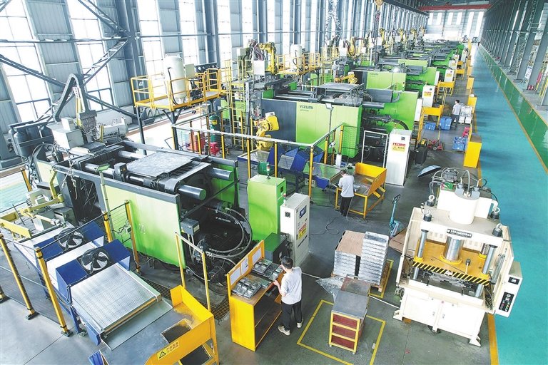 近日,位于宁都县工业园的江西竣昌科技有限公司智能压铸车间内,机械臂来回运转,工人在给锌铝合金精密压轴件去除披锋。近年来,宁都县大力推广节能减排降碳先进技术,加快提升产品设备节能标准,支持重点领域节能改造,助力企业提高生产能力和生产效率,进一步降本增效。特约记者曾嵘峰 通讯员钟院兰 摄