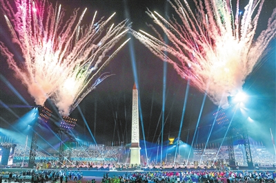 这是8月28日在巴黎协和广场拍摄的开幕式现场的焰火表演。当日,第17届夏季残疾人奥林匹克运动会开幕式在法国巴黎举行。新华社记者张铖 摄