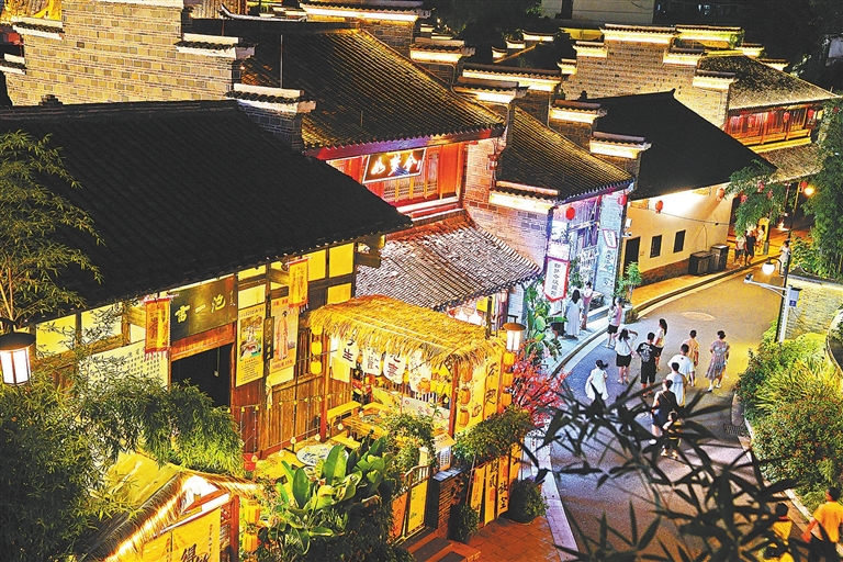 8月30日晚,游客在赣州江南宋城景区游玩。暑期接近尾声,我市中心城区各个旅游景点热度不减,不少家长纷纷抓住暑假的“尾巴”,带着孩子夜游宋城赣州,来一场清凉之旅。记者欧艳芬 摄