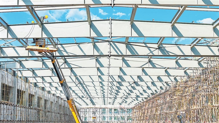 10月2日,赣县区江钨(赣州)硬质合金有限公司2500吨高端硬质合金及2000万片高性能数控涂层刀片项目现场,工人在安装钢结构厂房。记者伍煜 通讯员薛顺鑫 摄