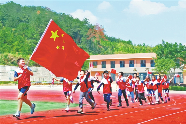 国庆前夕,共青团信丰县委、信丰县少工委组织少先队员们开展“向国旗敬礼 青春致敬祖国”主题队课,表达对祖国的热爱和祝福。陆琪瑄 张慧英 摄