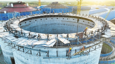 10月3日,中央储备粮宁都直属库有限公司石上分公司10万吨浅圆仓及附属设施项目建设现场,建设者在加紧施工作业。特约记者胡江涛 摄