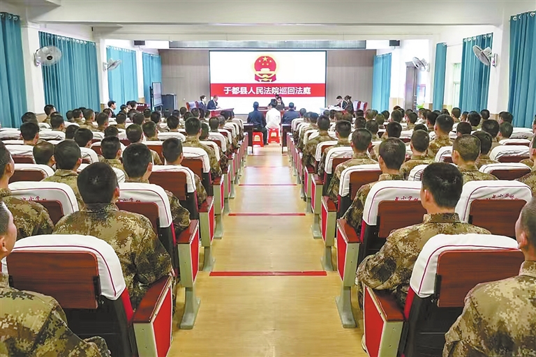 日前,于都县人民法院拥军法庭打好“巡回审理+专题讲座+宪法宣誓”组合拳,为于都县2025年近200名新兵上好法治“第一课”。张施云 廖婷 摄