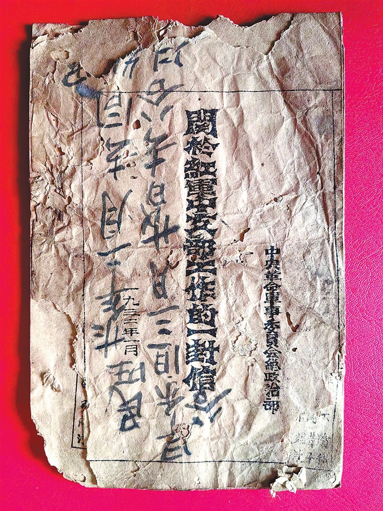 “这本小册子由苏区时期中革军委总政治部印刷。信的落款是时任总政治部主任王稼祥。它是红军总政治部向全军发出的重要文件,明确提出党对军队‘绝对领导’的概念,旨在纠正当时红军中党的工作偏差,巩固党的领导核心地位,其重要意义不言而喻。”钟文辉说。