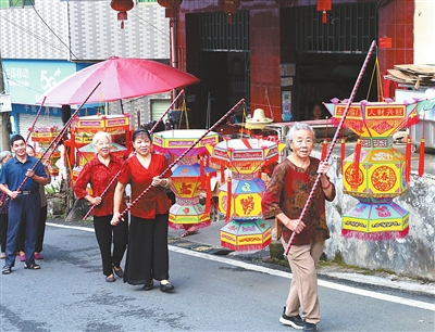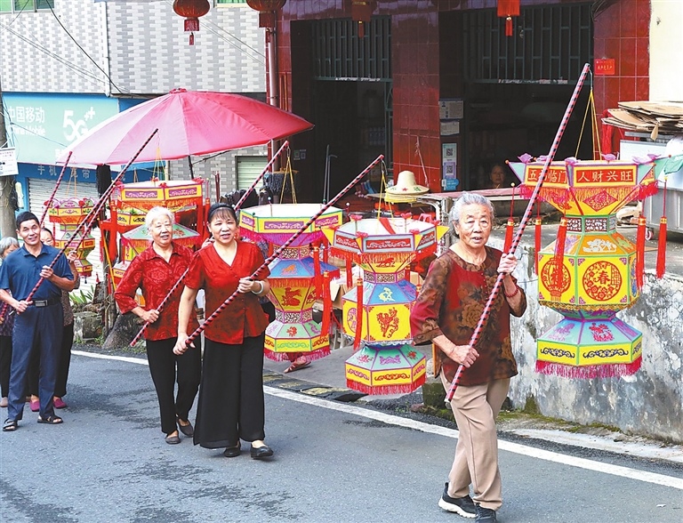 中秋临近,赣县区田村古镇再度热闹起来。大街小巷琳琅满目的花灯,将古镇的中秋氛围点燃。据悉,“吊花灯”是田村欢度中秋的传统习俗,已有1400多年历史,延续至今。它与田村黄元米果一样,成为田村声名远扬的文化符号。