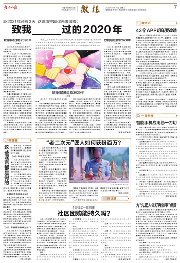 “致我__过的2020年”,2020年迎来尾声,面对这样一道填空题,你会以什么词来总结?有不少官方微博发出征集,感动、悲伤、激动……收到了一段段不同的人生故事,现摘录部分,收拾好这一年的回忆,把感伤和遗憾留在2020,把期待和美好带进2021。