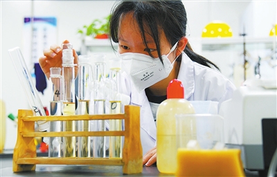 近日,在江西省鑫盛钨业有限公司的试验室,技术人员正在调试新产品。 特约记者詹继成 摄