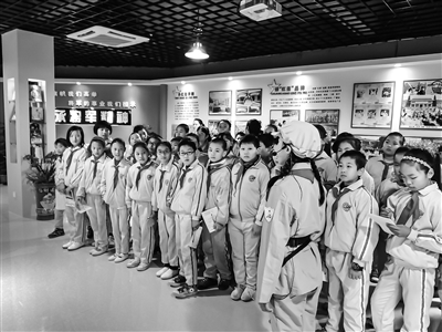 兴国县萧华红军小学的小红星讲解员在“红星闪闪”德育馆为同学们讲解。