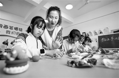 课前,学生们围在一起跃跃欲试,纷纷讨论今天要创作的“主人公”。构思、搓泥、拼凑……在老师的悉心指导下,兴趣小组的学生们不一会儿,就创作出了一件件栩栩如生的作品:有披着长裙的公主,有插满仙人掌的花盘,有红色皮肤的猪……“学生们非常喜欢这样的课堂。”谢芳宁说,黏土手工制作课堂不仅极大提升了学生的思维想象能力,也增强了孩子们的美感和空间感。