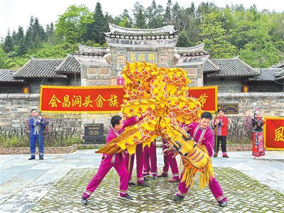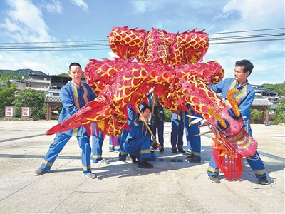 洞头畲乡摆字龙舞队在表演。