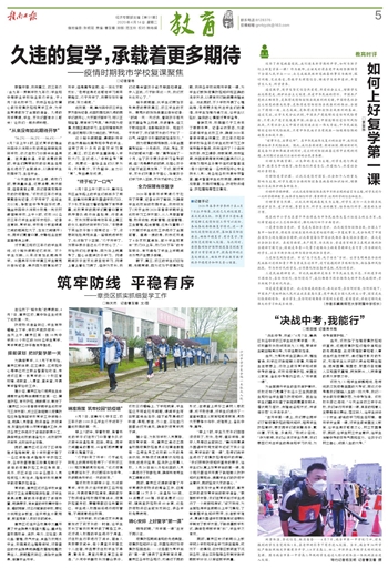 经历了新冠病毒侵扰,我们迎来新学期的开学,如何为孩子们上好复学第一课?作为教师,应该及时将在党中央的坚强领导下全国人民万众一心、众志成城战胜新冠病毒的事实为教材,探讨问题、交流感受,厚植学生理想信念,铸造学生使命意识,丰富学生人文、科学素养。