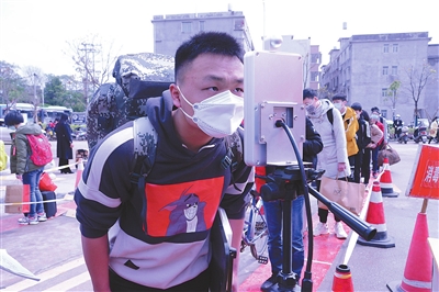 测量体温、登记信息、踩消毒垫……4月7日,瑞金市第一中学校门口,前来报到的学生自觉间隔1米,在老师的引导下有序进入校园。当日,瑞金市34所学校严格按照相关步骤有序开学,1.8万名高三、初三、中职毕业年级学生顺利返校复课。图为瑞金市第一中学高三年级的学生通过人脸识别体温一体机测温后进入校园。