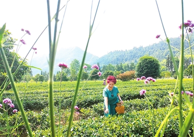 5月5日,游客在上犹县梅水乡园村茶园体验采摘。上犹县充分发挥资源优势,多举措推进茶产业和旅游产业融合发展,成为“茶旅融合竞争力全国十强县”。