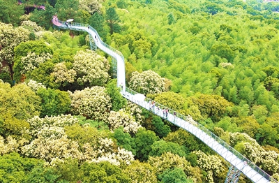 5月1日,游客在大余县黄龙镇丫山风景区游玩。“五一”期间,人们纷纷走出家门乐享假期。