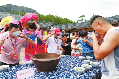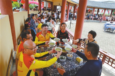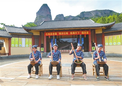 “来喝擂茶咯——”在省5A级乡村旅游点的石城县大畲旅游新村,随着客家妹子的热情吆喝,前来品尝清香味纯客家擂茶的游客来了一拨又一拨。近日,石城县以“情浓石城、客满天下”为主题举办首届客家擂茶宴,推出擂茶文化展、客家采茶戏表演、“擂王”挑战赛、擂茶制作体验、品客家擂茶宴等精彩的美食文化系列活动,让广大游客在茶香弥漫的氛围里,感受客家民俗文化的可观可赏可体验。