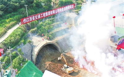 近日,遂川至大余高速全线最长隧道——五指峰隧道开挖。该隧道出口位于上犹县双溪乡水头村,进口位于吉安市遂川县左安镇圆溪村,单幅全长4930米,是一座双向四车道分离式特长隧道,是全线重点控制性工程之一。记者吴悦 通讯员王健 摄