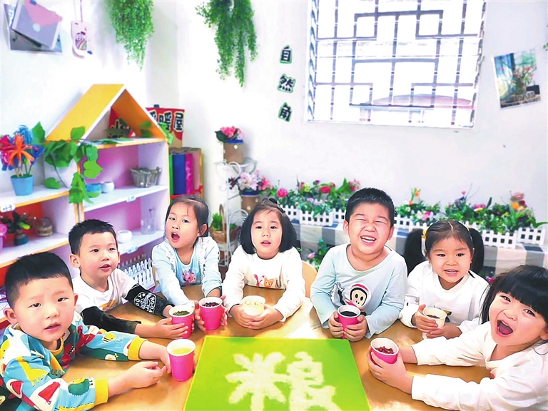 →10月14日,在第42个世界粮食日到来之际,章贡区第二保育院开展“喜迎党的二十大 爱粮节粮传美德”系列主题活动。活动通过主题教育、绘本阅读、情景表演、节粮海报制作、争当“光盘小达人”等多种形式,让孩子们了解世界粮食日的意义,认识节约粮食的重要性,让孩子们从小养成爱惜粮食、节约粮食的好习惯。图为孩子们在了解粮食的种类。