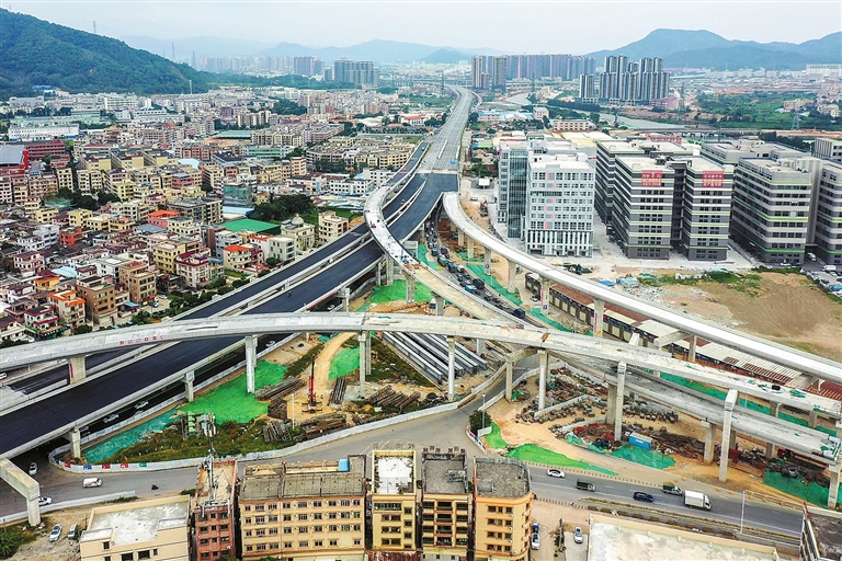 →位于中山坦洲镇的坦神北路龙塘互通。11月16日,中铁十一局承建的中山坦神北路主线最后一片混凝土箱梁吊装完成。该线贯穿中山南部的三乡、神湾、坦洲镇,南临珠海,是连接G105国道、G228国道的联络通道。作为中山市重点民生工程,坦神北路快速化改造完成后,将起到畅通粤港澳大湾区交通“毛细血管”的作用。